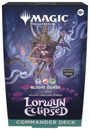 Commander decks are ready to play right out of the box and contain everything you need to play Magic's most popular multiplayer format. Lorwyn Eclipsed features two different Commander deck versions.
